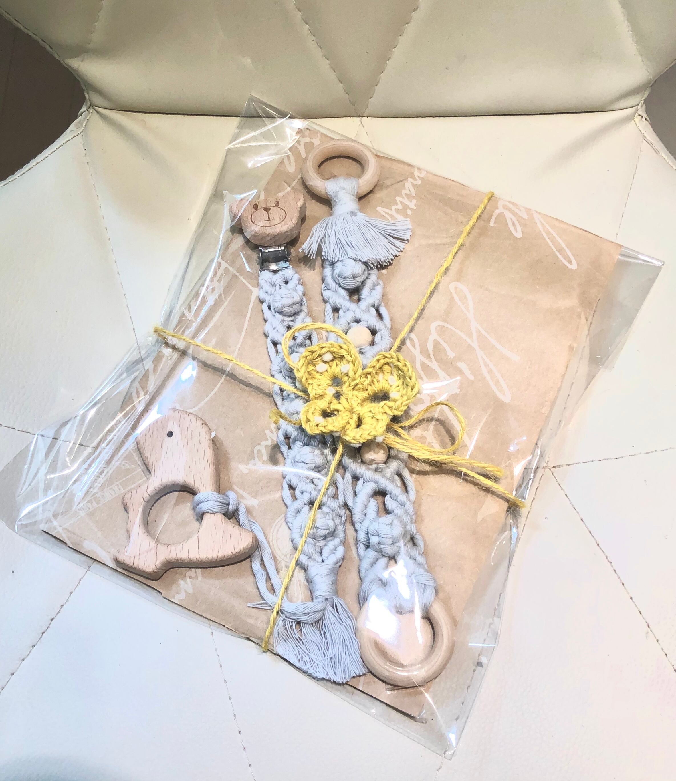 マクラメ部分は、赤ちゃんに優しいオーガニックコットン100%の糸を使用しています。