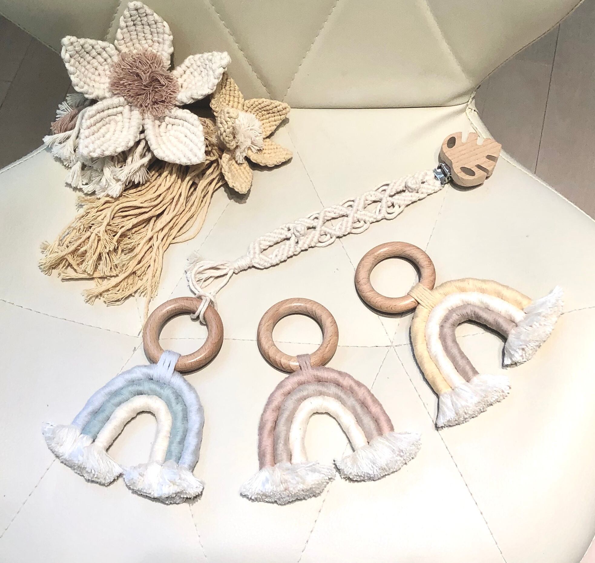 口に入れても安心な、オーガニックコットンやコットン100%の糸を使用して、レインボーを作りました。